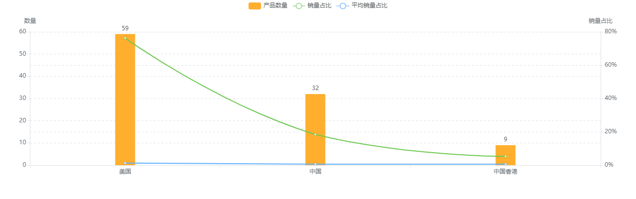 由图可知,产品在ASIN上和销量上以美国卖家为主。