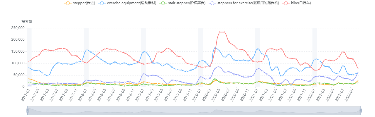 2017年以来相关关键词在Amazon的月搜索量如图所示: