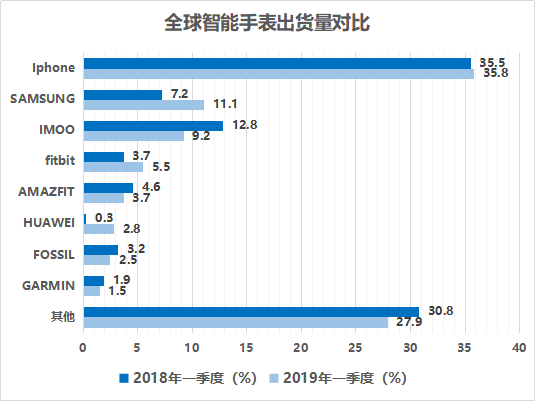 Counterpoin:《2019年Q1全球智能手表出货量同比增长48%,Apple Watch占三分之一》