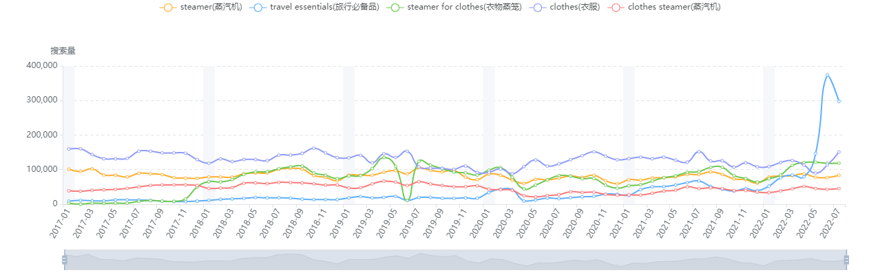 2017年以来相关关键词在Amazon的月搜索量如图所示: