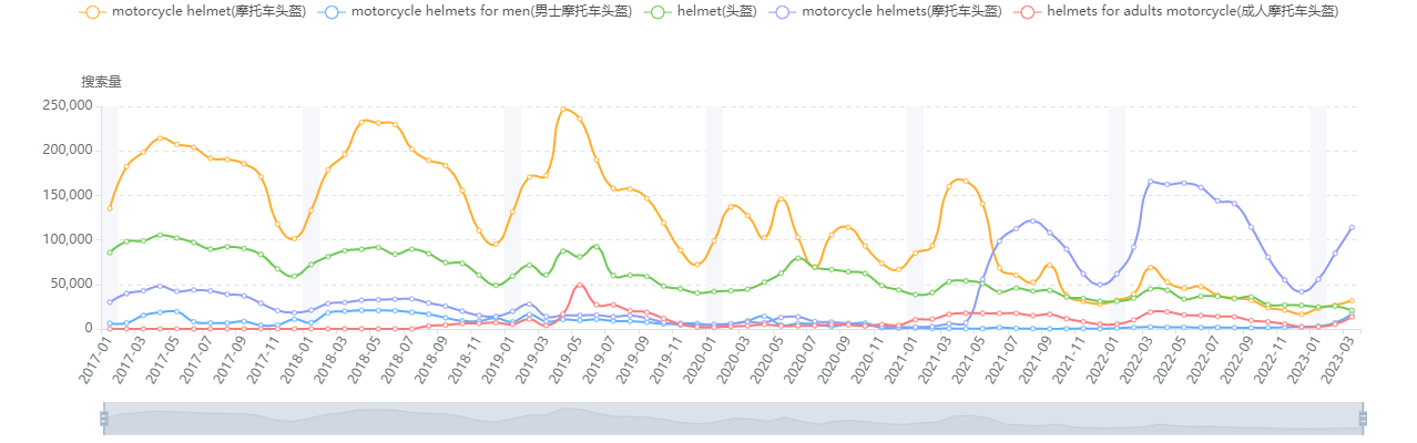 2017年以来相关关键词在Amazon的月搜索量如图所示: