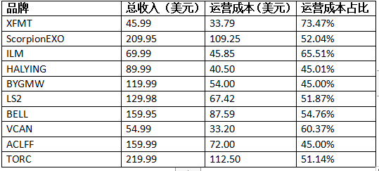 由表可知,该产品运营成本在45%-70%左右。