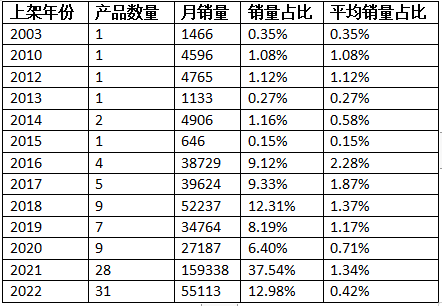 由图可知,该产品生命周期较长(平均上架天数1年11个月)。