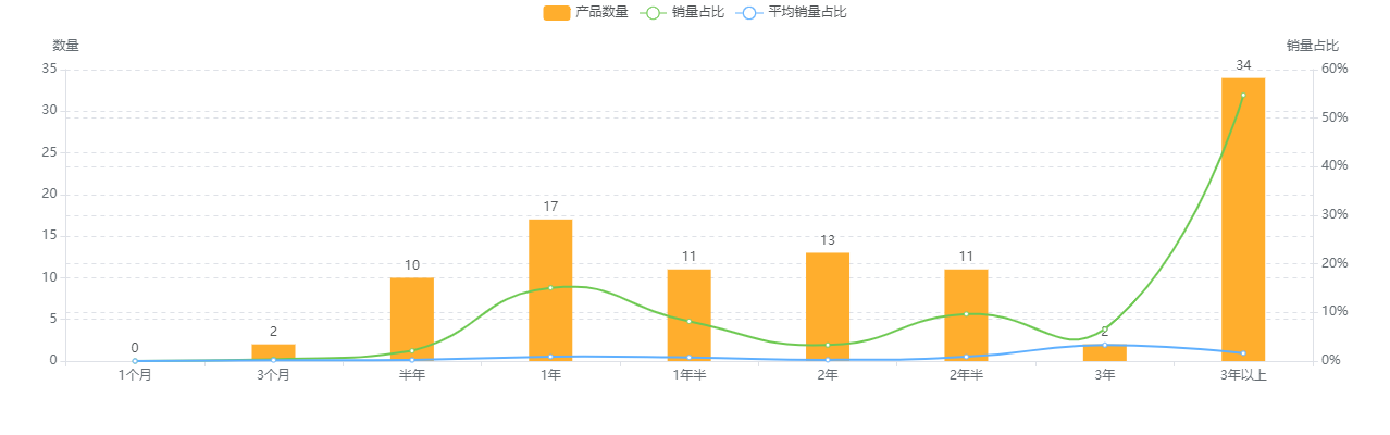 由图可知,该产品生命周期较长(平均上架天数2年2个月)。
