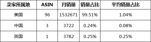 由图可知,卖家集中极高(共28家卖家,集中度98%)。